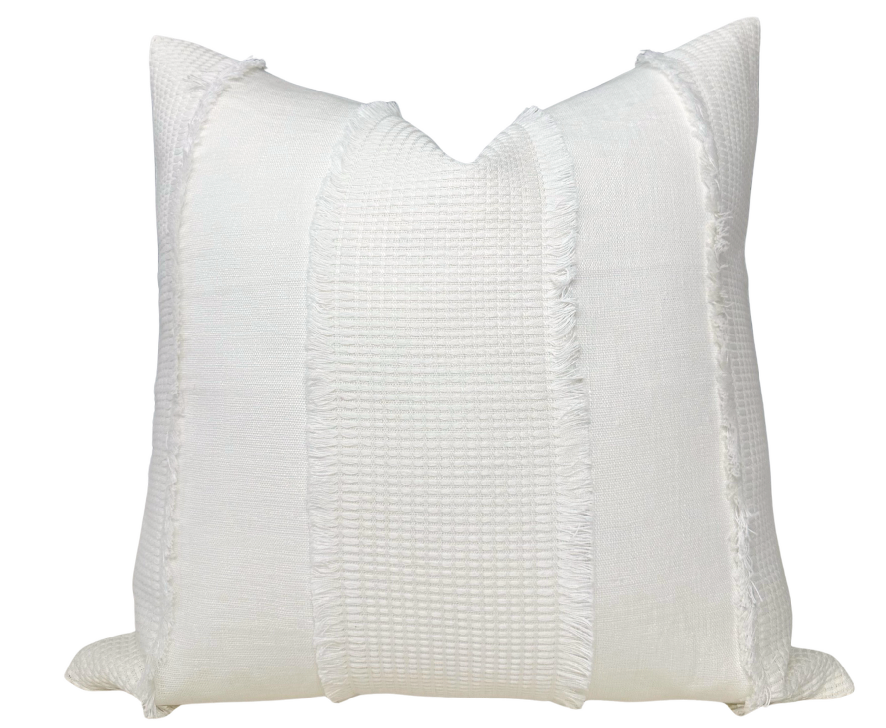 All pillow covers are sewn professionally, over-locked with finished edges to prevent fraying and has invisible zipper enclosures. This provides long lasting, durable covers that will stay straight and beautiful over time, which makes for a clean professional look.